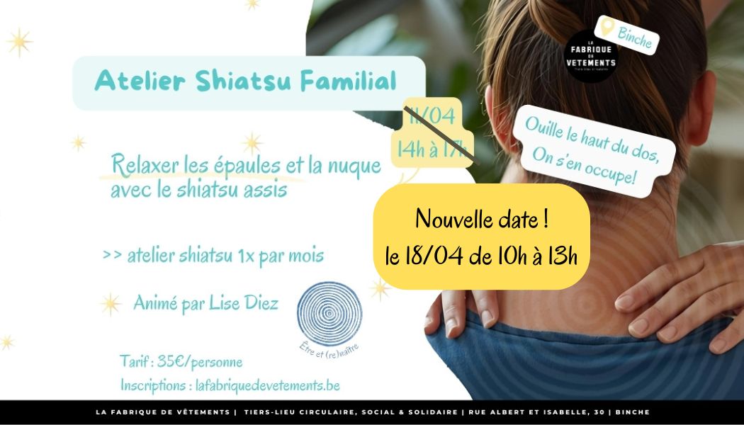 NOUVELLE DATE & HEURE - samedi 18 avril : Atelier de shiatsu